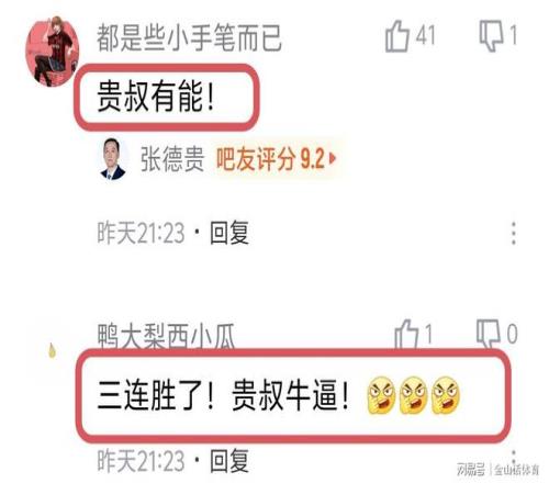 天津队3连胜,也让网友们纷纷为老帅张德贵叫好。“贵叔越赢球,越能体现出前边那位有多水。”;“3连胜了都,还赢了北控和同曦,这么看,救火教头张德贵,还是有两把刷子!”;“天津队一下子就上来了”;“贵叔有能力!”;“三连胜了!贵叔牛逼!”……